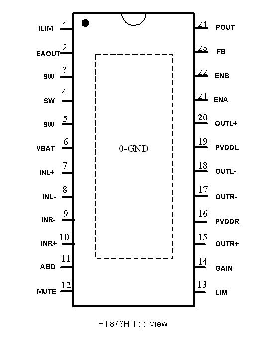 21 | ENA | I | Audio amplifier enabling terminal. Audio amplifier is enabled when it is pulled high. 功放使能端,接高時(shí)功放開(kāi)啟。 |