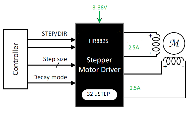 HR8825是一種內置步進(jìn)表的集成微步進(jìn)電機驅動(dòng)器,為打印機、掃描儀和其它自動(dòng)化設備提供解決方案。其設計為能使雙極步進(jìn)電機以全、半、1/4、1/8、1/16、1/32步進(jìn)模式工作。步進(jìn)模式由邏輯輸入MODEx選擇。輸出驅動(dòng)能力達到38V和±2.5A。HR8825的衰減模式可編程。